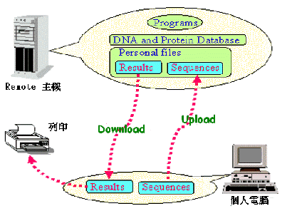 | 此 外,使 用 者 必 須 注 意 序 列 檔 案 ( 通 常 為 純 文 字 格 式,多 設 為 .txt, .seq, .pep, .dat, .fasta, .list, .msf, pretty...... 等 附 檔 名 ) 以 及 postscript (如 .ps)的 檔 案, 必 須 以 ascii 模 式 上 傳 和 下 載,若 是 圖 片 類 (如 .gif ) 檔 案,則 必 須 以 binary 模 式 上 傳 及 下 載。 | ||||||||||||||||||||||||||||||||||||||||||||||||||||