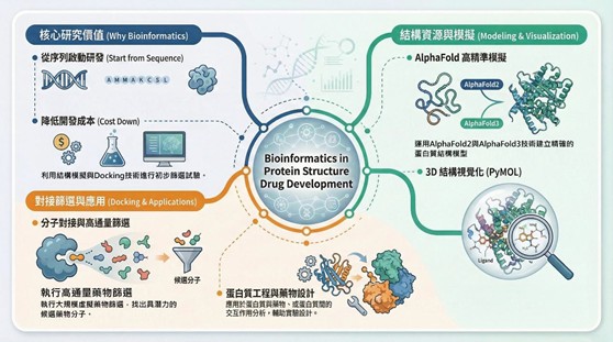 - AlphaFold 結構模擬實作:靈活運用 AlphaFold2 & 3 結構模擬,銜接後續蛋白質結構實驗設計。