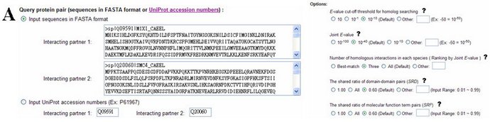 (A) PPISearch提供使用者輸入兩條蛋白質序列 |